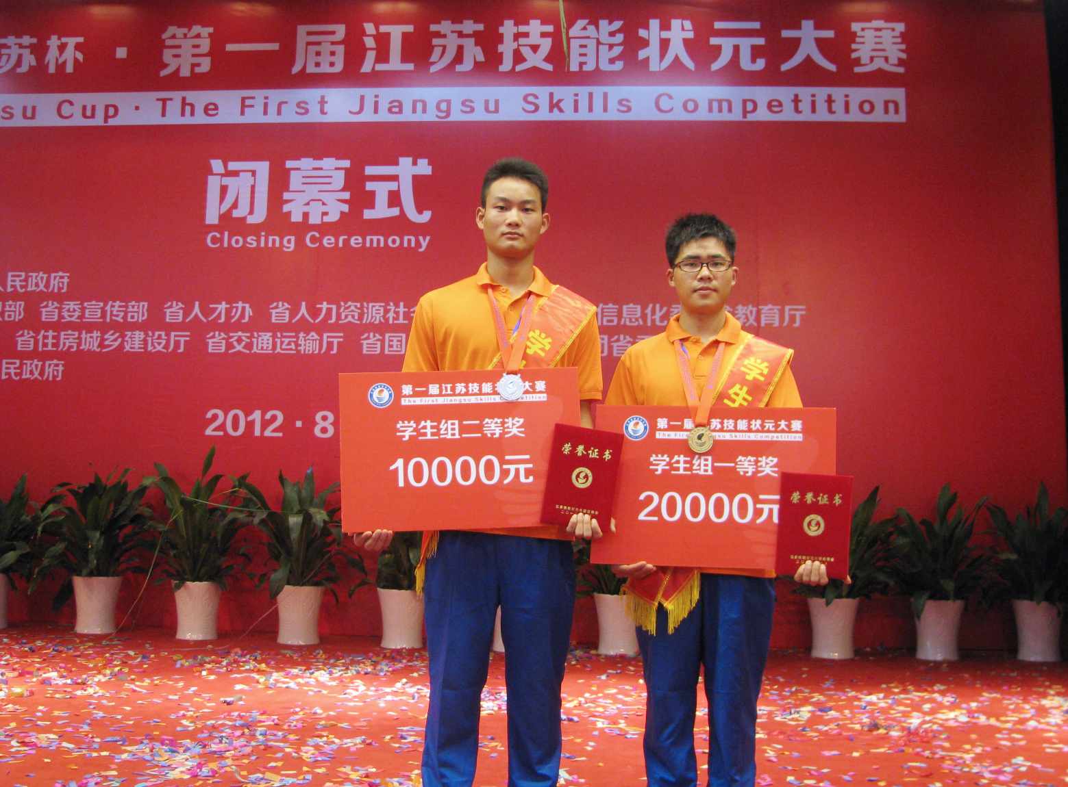 第一届“江苏技能状元”大赛中获得学生组第一名和第二名