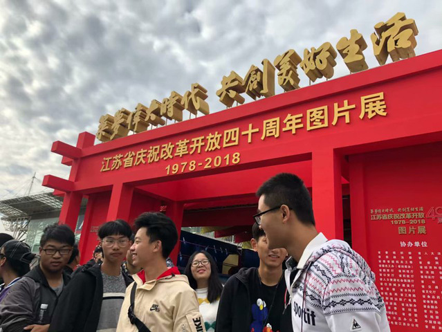 一个镜头可以凝聚动人瞬间,一组图片能够展现伟大变化。走进展馆,入眼便是江苏省十三个市40年的城市变化对比组图。慢慢走过这条时间的长廊,直观体会40年来城市的巨大变迁,江苏改革开放历史进程的波澜画卷一览无遗。作为排头兵,江苏省始终走在全国改革开放的前列:1978年5月11日,《光明日报》发表特约评论员文章《实践是检验真理的唯一标准》,南大哲学系教师胡福明是这篇文章的主要作者之一;1978年9月,泗洪县上塘公社率先推行家庭联产承包责任制,拉开了江苏农村改革的序幕;1992年初,邓小平视察南方途经江苏,殷切盼望江苏发展应该比全国平均速度快……40年风雨兼程,40年砥砺图强,40年众志成城,40年春风化雨。在改革开放的历史进程中,江苏人民创造了一个又一个发展奇迹。