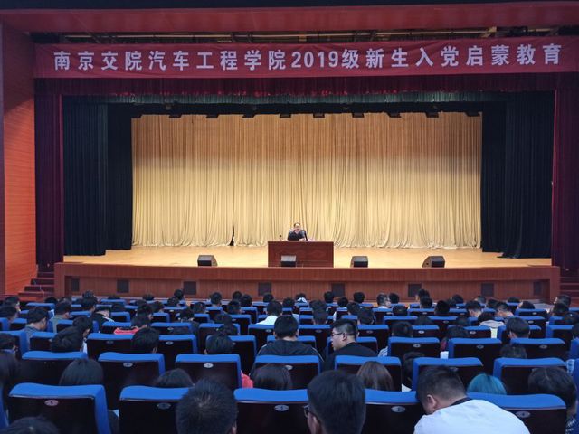 10月8日晚,汽车工程学院新生入党启蒙教育在图书馆报告厅举行,汽车工程学院党总支书记赵勇作了“不忘初心、牢记使命,坚定理想信念、放飞青春梦想”主题讲座,2019级全体新生参加了教育活动。