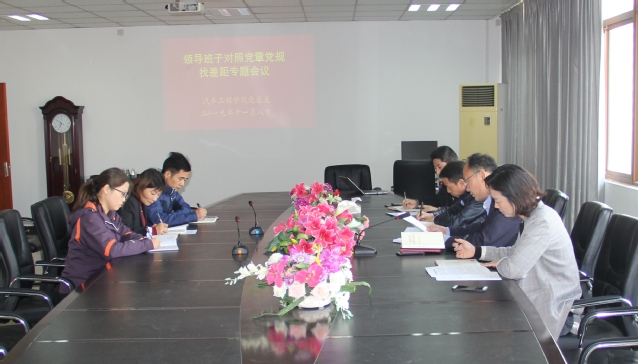 根据学院主题教育工作安排,11月8日下午,学院在致远楼404会议室召开了领导班子对照党章党规找差距专题会议。院领导、党总支委员、各党支部书记参加会议。