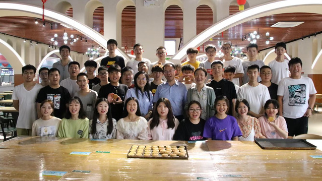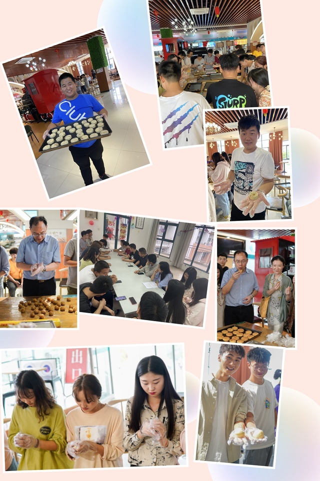 在学工办戴萍老师的带领下,同学们精心准备了与中秋节相关的诗歌、神话、传说、习俗欢聚学生宿舍楼A栋活动室,一起讨论、分享中秋节的文化传统,每个同学从自己的角度谈论了中秋节的体验和经历。随后,同学们和老师来到二食堂体验月饼制作,学院党总支赵勇书记、王琼副书记和同学们称月饼皮、月饼馅,包月饼,压制花色,烘焙。师生通力合作,一锅锅香气四溢的月饼出炉,师生围坐一起,吃月饼,话中秋,其乐融融。