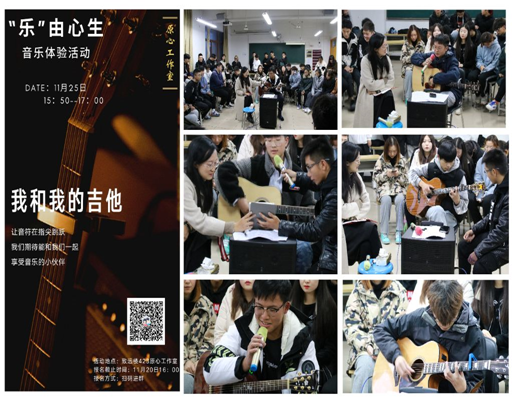 11月25日下午,原心工作室戴萍老师在致远楼组织开展了“乐由心生——我和我的吉他”音乐体验活动,共有68名同学参加。