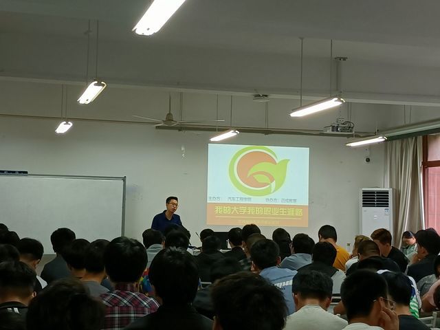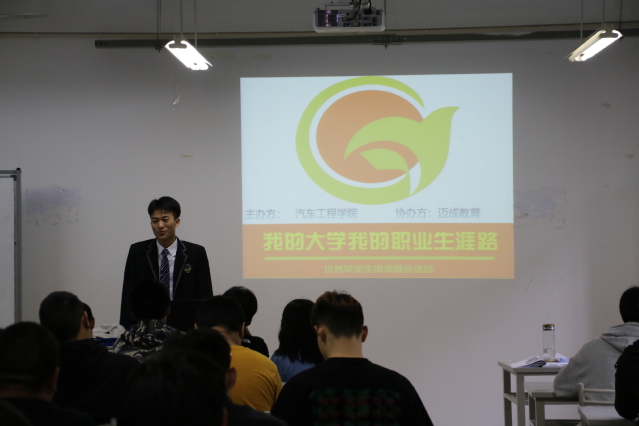 5月11日下午,汽车工程学院在致远楼209组织2021届优秀毕业生代表迟文俊、王家旺、文谦艺三名同学为在校生分享实习经历,一百余名在校生参加了分享会。