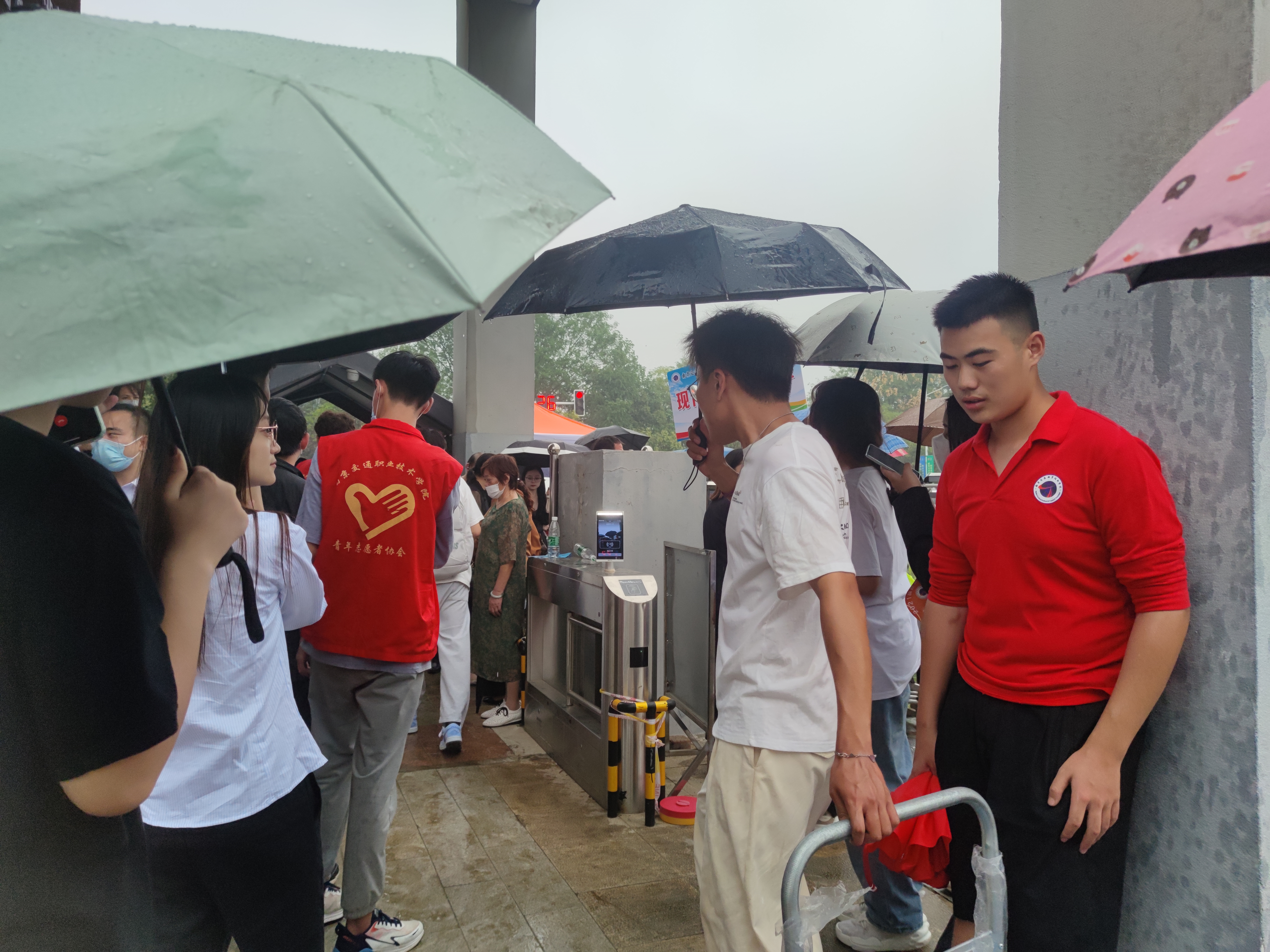 校门口,志愿者严格遵守疫情防控要求,检查健康码,行程码,测量体温。
