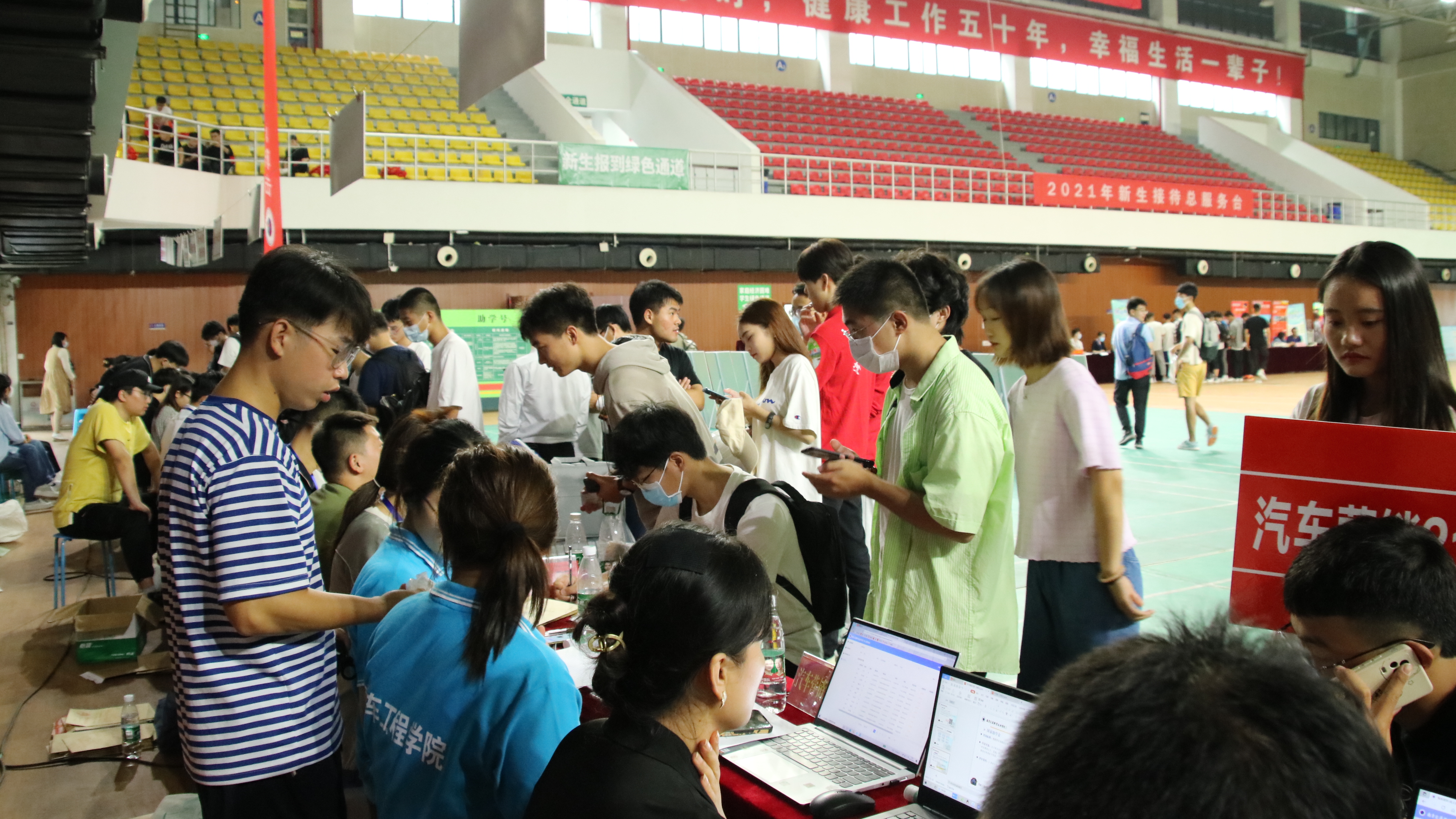进入校园后,汽车工程学院的迎新生帐篷赫然醒目,志愿者们等候在此,帮助新生搬运行李,引导他们前去完成下一步任务。