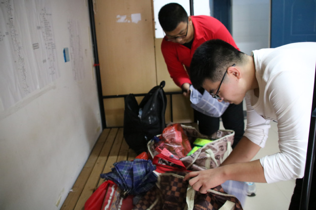 行健馆报道结束后,志愿者带着新生前去宿舍领取宿舍钥匙,公寓生活用品,并协助他们整理床铺。