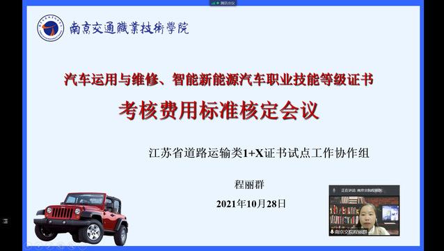10月28日晚,江苏省道路运输类1+X证书试点工作协作组召开了汽车运用与维修、智能新能源汽车职业技能等级证书考核费用标准核定线上会议。培训评价组织—北京中车行高新技术有限公司副总经理王勇先生、区域经理王英杰女士,以及全省52所中、高职试点院校代表参加了会议。我校作为江苏省道路运输类1+X证书制度试点协作组组长单位主办了本次会议,会议由汽车工程学院程丽群副院长主持。