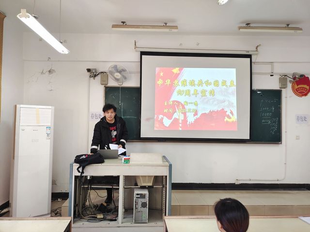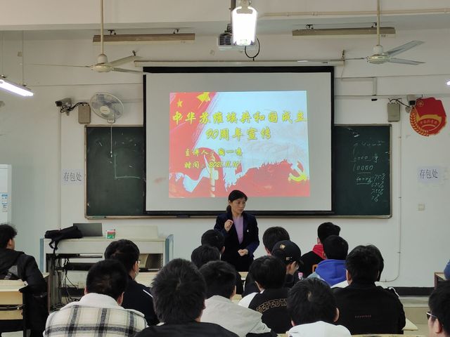 11月10日下午,汽车工程学院第二十一期团学干部“学党史、讲党史”宣讲活动在致远楼301顺利举办。2010124班周立卫和陶一鸣两位同学分别讲述了新华社建社90周年和中华苏维埃共和国成立90周年。
