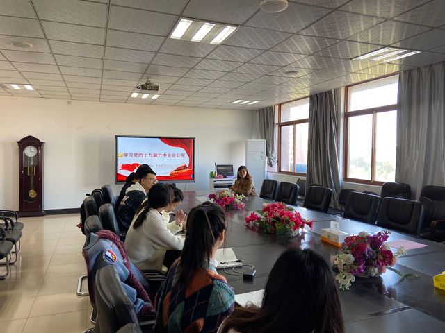 王雪琴老师领学了党的十九届六中全会会议公报。全会通过的《中共中央关于党的百年奋斗成就和历史经验的决议》是一篇马克思主义纲领性文献,是新时代中国共产党人的政治宣言,是实现伟大复兴中国梦的行动指南,对党的百年奋斗重大成就和历史经验进行了总结和回顾。