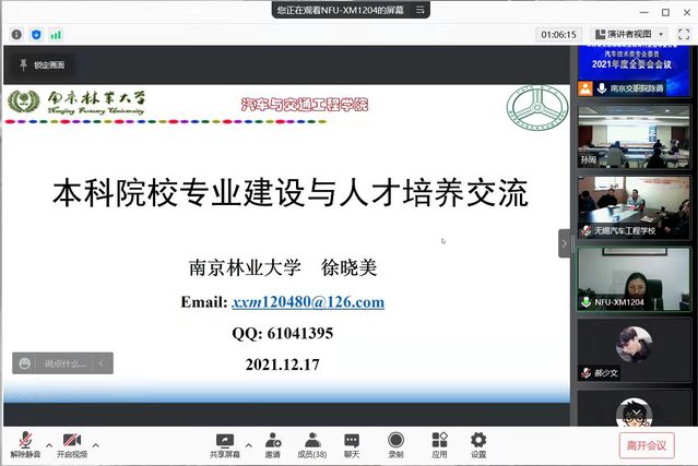为加强委员之间的交流,特邀请部分委员就汽车职业教育的热点问题作专题报告。汽车维护与修理杂志社副社长兼总编于开成,节能和新能源汽车发展技术路线解读;南京林业大学汽车与交通学院副院长徐晓美教授,本科院校专业建设与人才培养交流;南京工业职业技术大学丁继斌教授,基于岗课赛证、纵向贯通的汽车服务工程技术汽车专业建设;南京交通职业技术学院汽车工程学院副院长程丽群,江苏省汽车类1+X试点情况与思考;南京交通职业技术学院汽车工程学院副院长陈勇,2021年汽车类中职学考情况与汽车类职教高考技能考试的设想;上海景格科技股份有限公司研究院执行院长赵文,产教融合,创新新汽车人才培养生态。