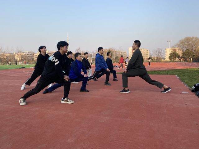 为加强我院退伍大学生士兵与同学间的沟通交流,更好的适应大学生活,我院开展“情系军营——退伍不褪色”体育训练活动。2月24日下午两节课后,在学工办辅导员朱吉顺老师的组织下,同学们自愿报名,与几位退伍士兵一起进行长跑训练。
