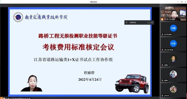 4月22日-24日,江苏省道路运输类1+X证书试点工作协作组分别召开了网约车运营管理、新能源汽车装调与测试、路桥工程无损检测三张职业技能等级证书考核费用标准核定线上会议。培训评价组织北京运华科技发展有限公司、北京卓创至诚技术有限公司、四川升拓检测技术股份有限公司,以及全省参与证书试点的院校代表参加了会议。我校作为江苏省道路运输类1+X证书制度试点协作组组长单位主办了本次会议,会议由汽车工程学院程丽群副院长主持。