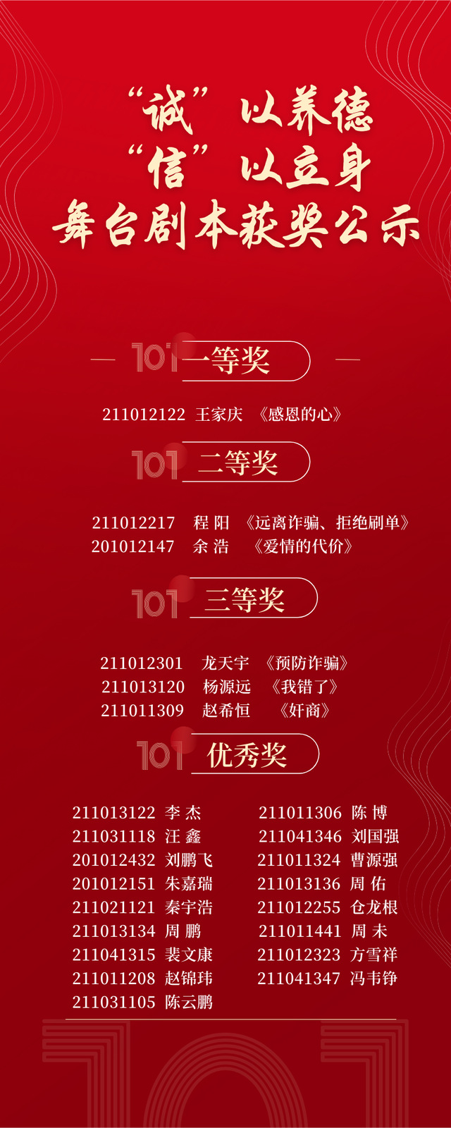 “诚”以养德、“信”以立身主题舞台剧本获奖公示