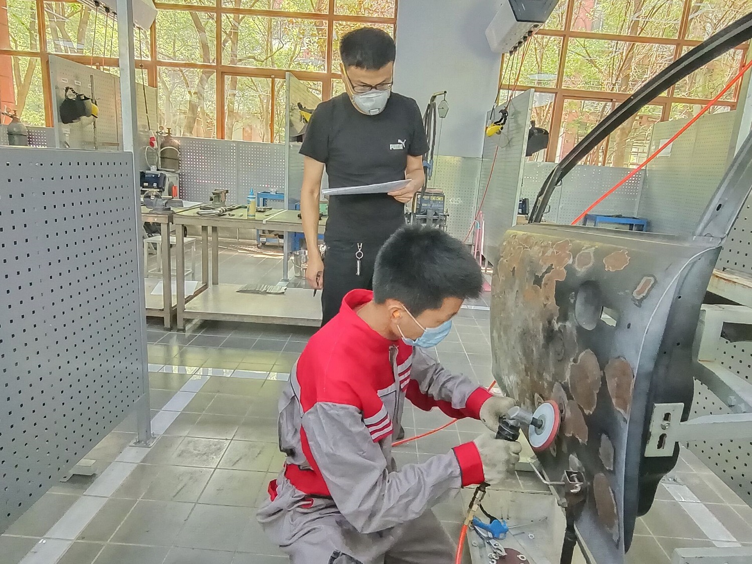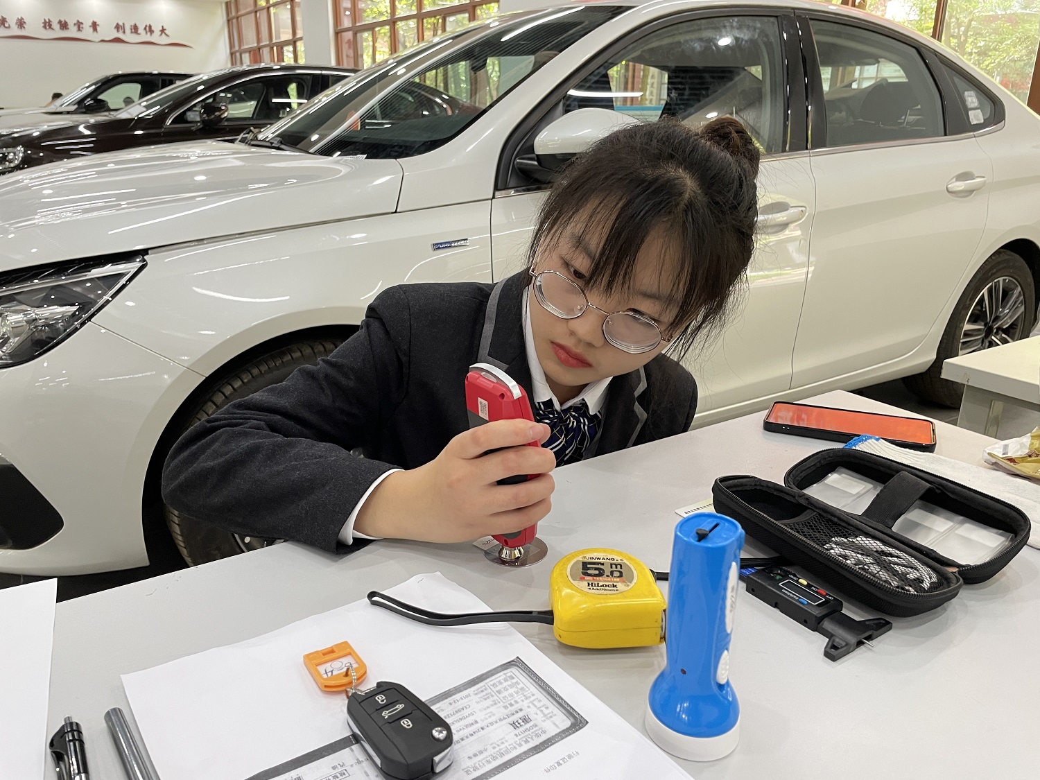 本次考评认证是在校领导和各部门的支持下,严格按照教育部认定的汽车专业领域职业教育培训评价组织的考评指南要求完成了考生报名、考前培训、考务组织等各项工作,考评有序进行,考场全程监控录像。共考评“汽车电子电气与空调舒适系统(中级)”“汽车营销评估与金融保险服务技术(中级)”“汽车车身钣金修复与车架调校技术(初级)”“新能源汽车汽车电子电气与空调舒适系统(中级)”四个模块证书,实现1+X职业技能等级证书专业全覆盖。汽车工程学院28名专业课教师参与了培训和考评工作,考评总共布置42个工位,考核所用车型涵盖一汽丰田、上汽大众、一汽大众、长安福特、一汽大众奥迪、东风标致、比亚迪、吉利等校企合作项目教学车型。每场考评中,考生轮流进行四项任务的操作,每个任务在30min内完成,共计120min。在考评过程中,同学们冷静思考、沉着应对、熟练操作、依次轮换工位认真作答。