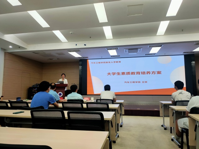 党总支王琼副书记向22级新生介绍了大学生素质教育培养方案,展示了汽车工程学院历届优秀毕业生典型代表,鼓励同学们从思想品德素质、专业文化素质、身心素质、艺术素质等方面不断完善自我,全面提高自身综合素质。
