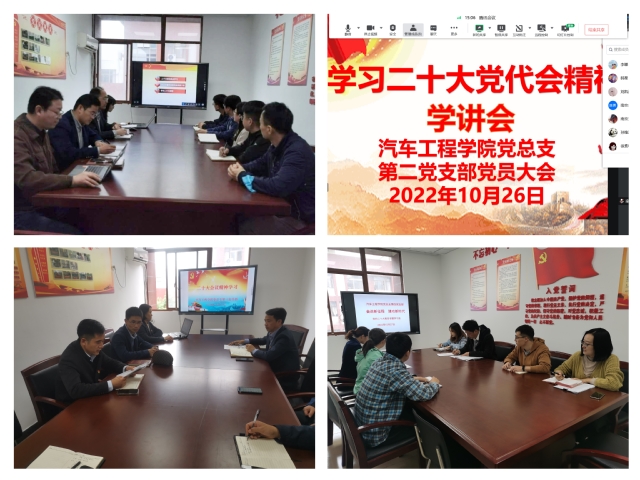 10月16日上午10时,中国共产党第二十次全国代表大会隆重开幕。习近平代表第十九届中央委员会向大会作了题为《高举中国特色社会主义伟大旗帜 为全面建设社会主义现代化国家而团结奋斗》的报告。10月26—28日,汽车工程学院四个党支部组织党员教师开展集中学习,掀起学习热潮。