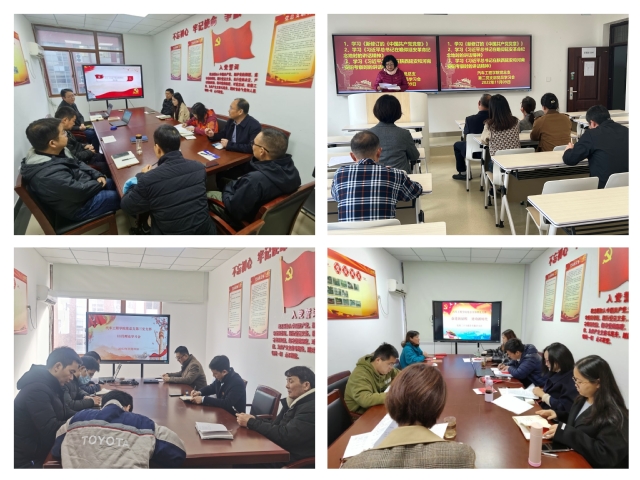在各党支部书记带领下,党员们集中学习了新修订的《中国共产党章程》、习近平总书记在瞻仰延安革命纪念地时的讲话精神、习近平总书记在陕西延安和河南安阳考察时的讲话精神、《习近平谈治国理政》第四卷等内容。第一党支部胡俊、化永星、刘静,第二党支部孙维汉、徐素明、陈勇、刘凯迪、韩星,第三党支部沙颂、刘阳,第四党支部王琼、戴萍、周杨、陈潘、梁原分别进行了学习交流。