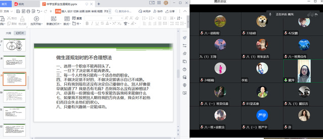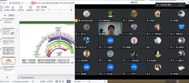 12月10日晚,汽车工程学院与江宁区梅龙湖学校携手举办中学生职业生涯规划教育讲座。学院关工委屠卫星老师,学工办戴萍老师、朱吉顺老师、梁原老师,梅龙湖学校教务处主任陶德进在线与八1班、九1班80余位同学、家长进行了交流。